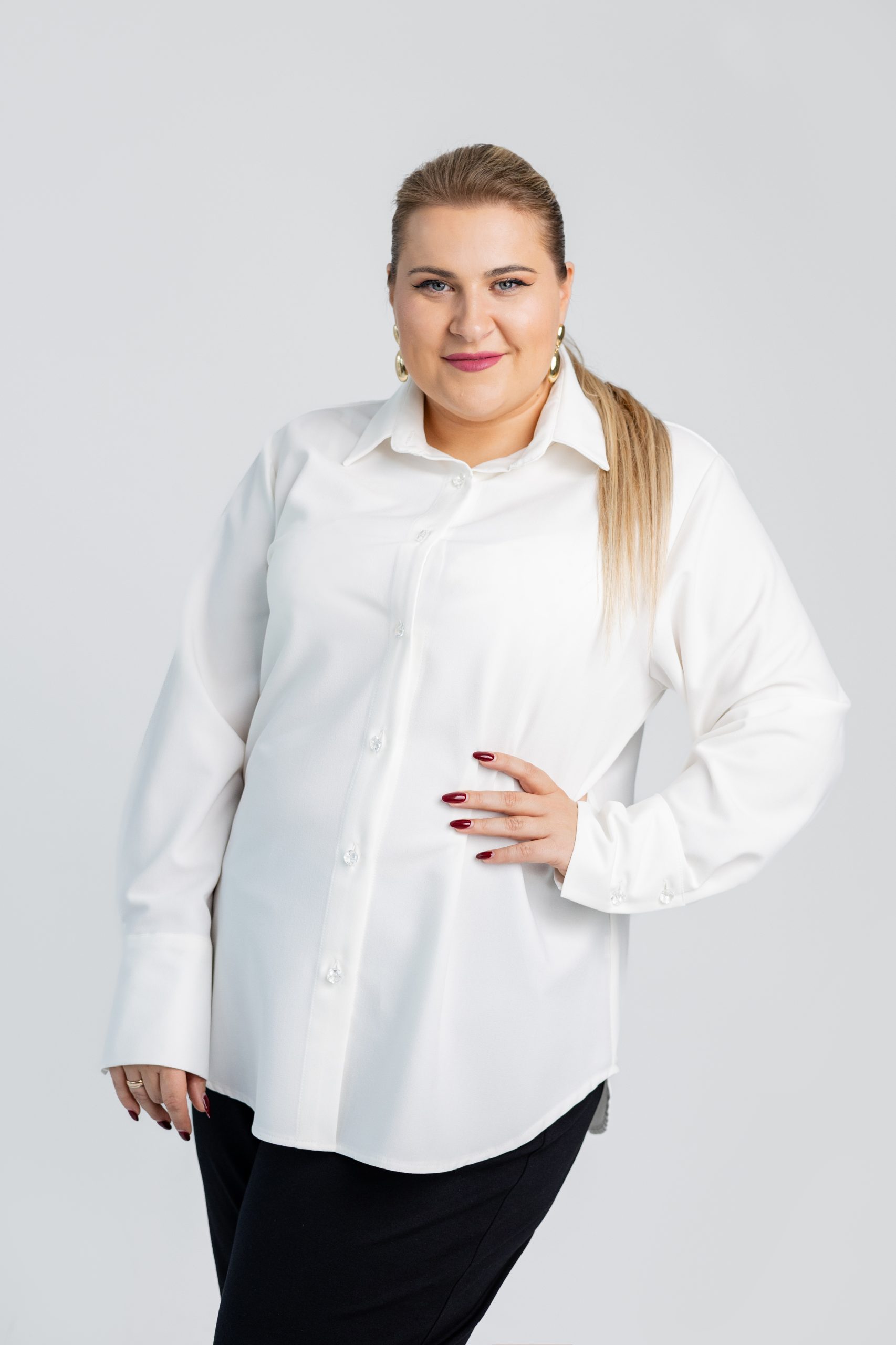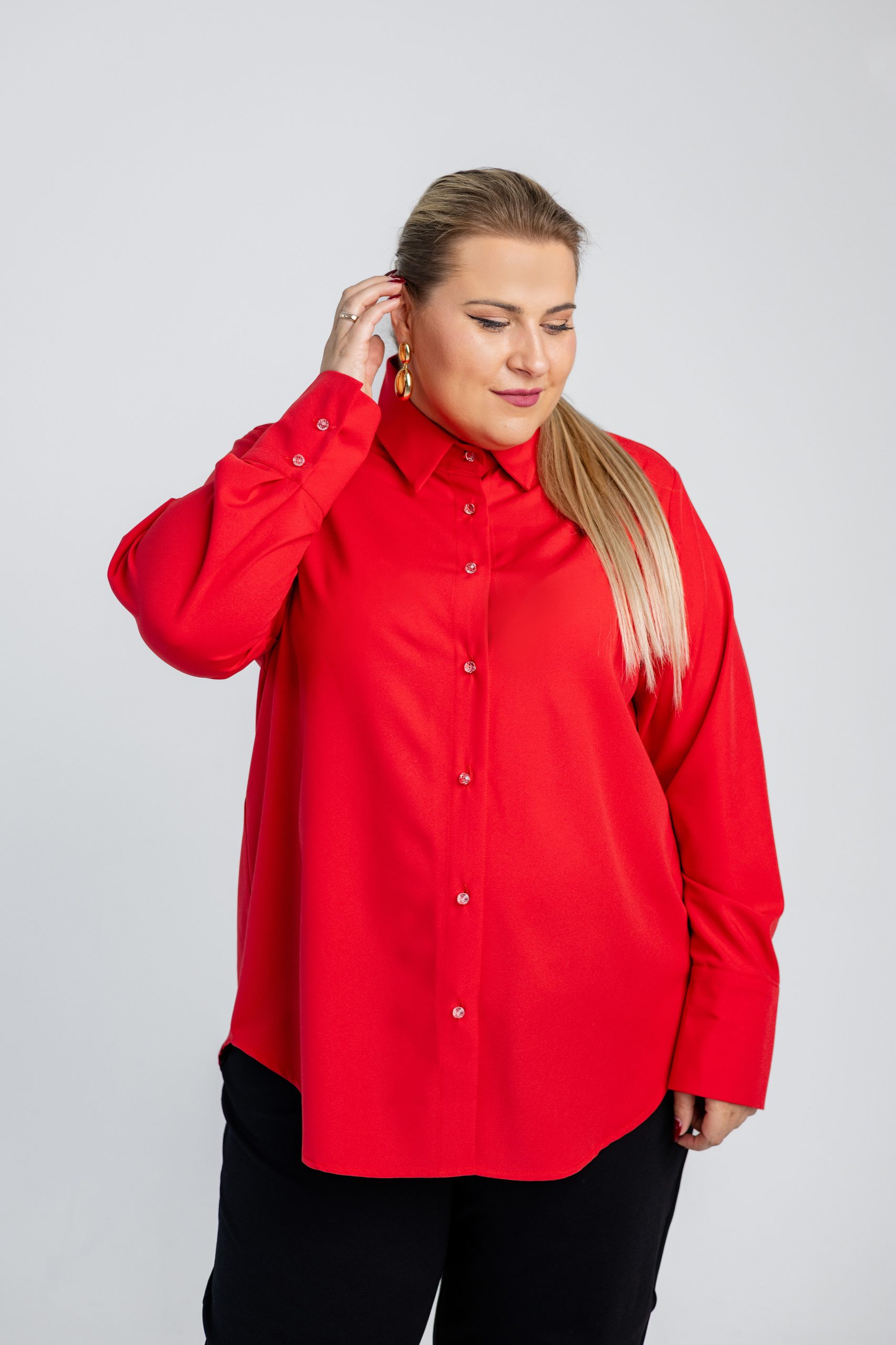 Klasikiniai marškiniai, tinkantys tiek kasdienai, tiek biuro stiliui. Nesiglamžantis audinys užtikrina tvarkingą išvaizdą visą dieną, o dailios skaidrios sagos suteikia subtilaus elegantiškumo. Marškiniai pasižymi patogiu, laisvesniu kirpimu, leidžiančiu jaustis komfortiškai bet kokia proga. Galima rinktis iš kelių spalvų: švelniai rožinės, baltos, juodos ir raudonos – todėl lengvai priderinsite prie skirtingų įvaizdžių.